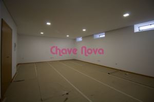 Ao entrar na moradia encontramos um hall e o acesso ao piso inferior onde se situa a cave de grandes dimensões.